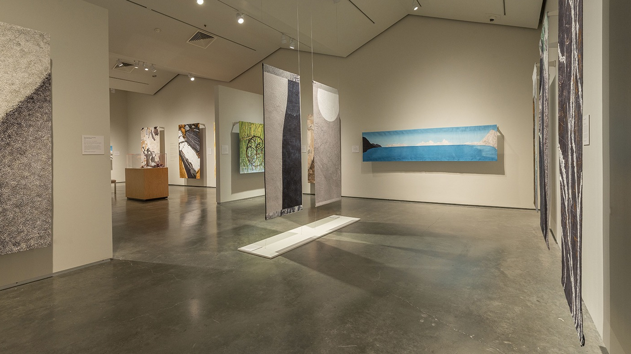 A textile exhibit by quilt artist, Ann Johnston, was one. Her theme was large-scale quilts inspired by the Sierra Nevada.  Intricate patterns and textures create literal, abstract and sometimes completely imaginative representations of the area. Machine and hand-stitching creates dimensional surfaces that reflect the varied geological makeup of the Sierra Nevada.  Here are some examples of her wonderful work.